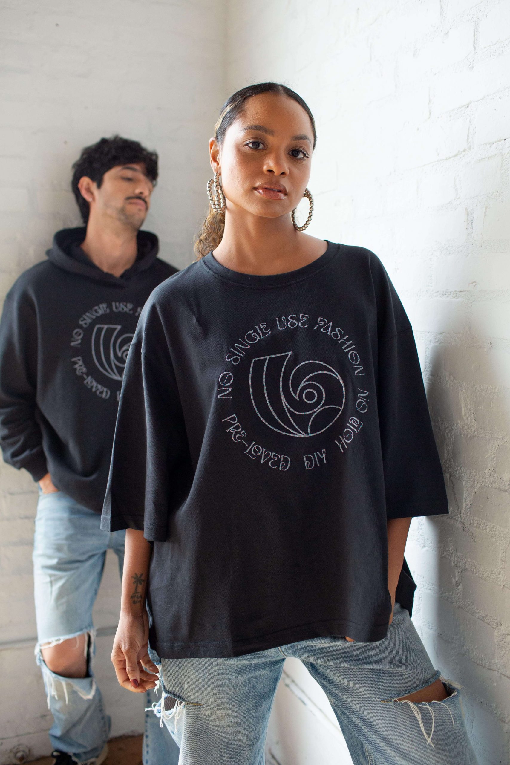 For the No Single Use Fashion campaign, our apparel collection—featuring an organic cotton T-shirt and an organic cotton and regenerative hemp hooded sweater—focuses on minimizing environmental impact.